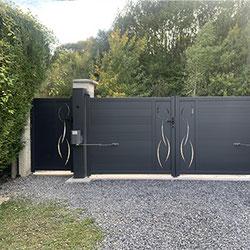 Explore o portão de design LIFE com seu padrão arqueado que adiciona um toque elegante e fluido ao visual geral. Essas linhas delicadas, inspiradas em arcos, oferecem um design equilibrado, preservando a privacidade do seu jardim. Este portão de alumínio combina modernidade e simplicidade, integrando-se elegantemente a todos os tipos de espaços, oferecendo proteção ideal sem comprometer a estética.